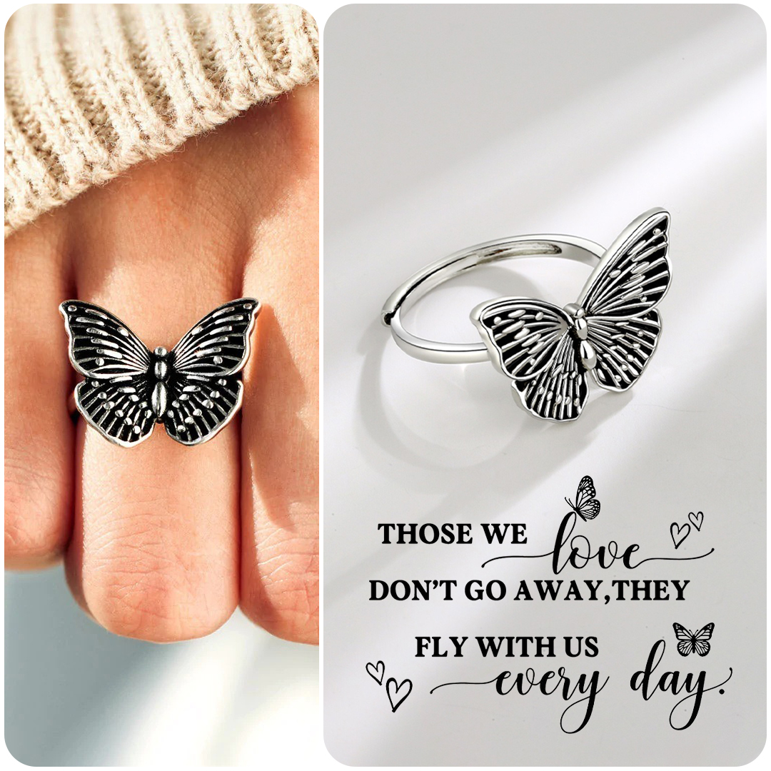 For Memorial-Black Butterfly Adjustable Ring