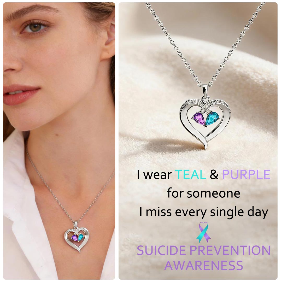 Suicide Prevention Awarness-Purple Blue Diamond Heart Necklace