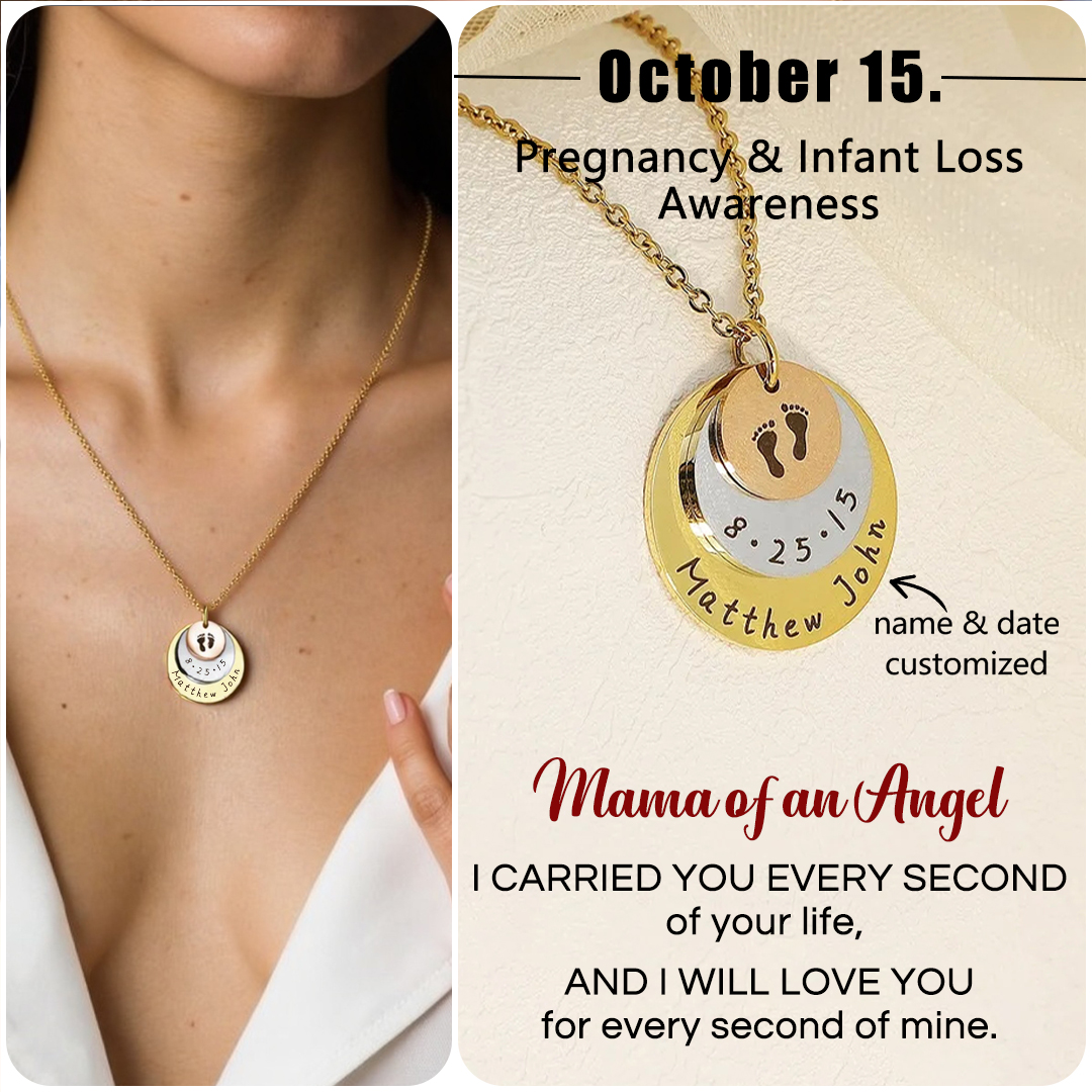Mama of an Angel- Round plate date name customized necklace