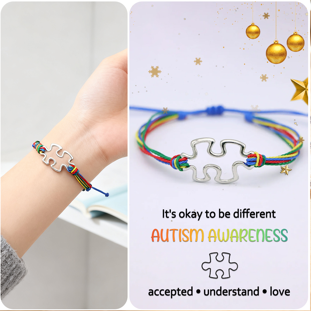 Autism Awarenss-Puzzle Colorful Braided Bracelet