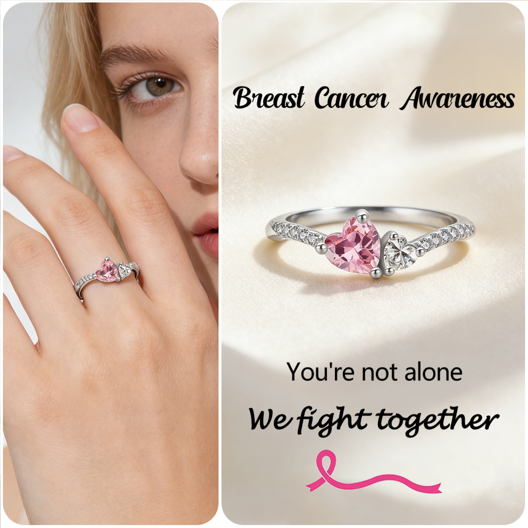 Breast Cancer Awareness-Pink Diamond Big & Small Heart Ring