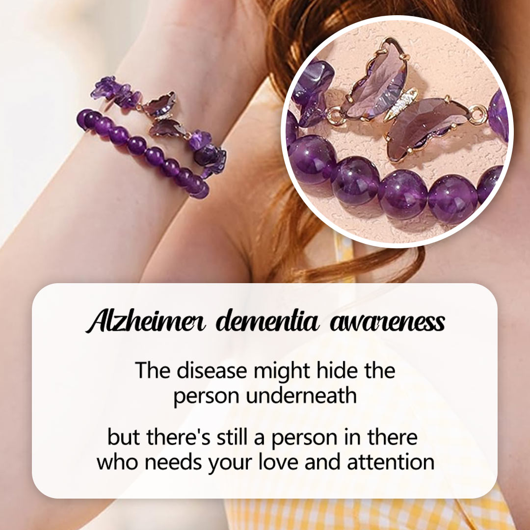 Alzheimer dementia awareness-Double-layer crystal butterfly bracelet