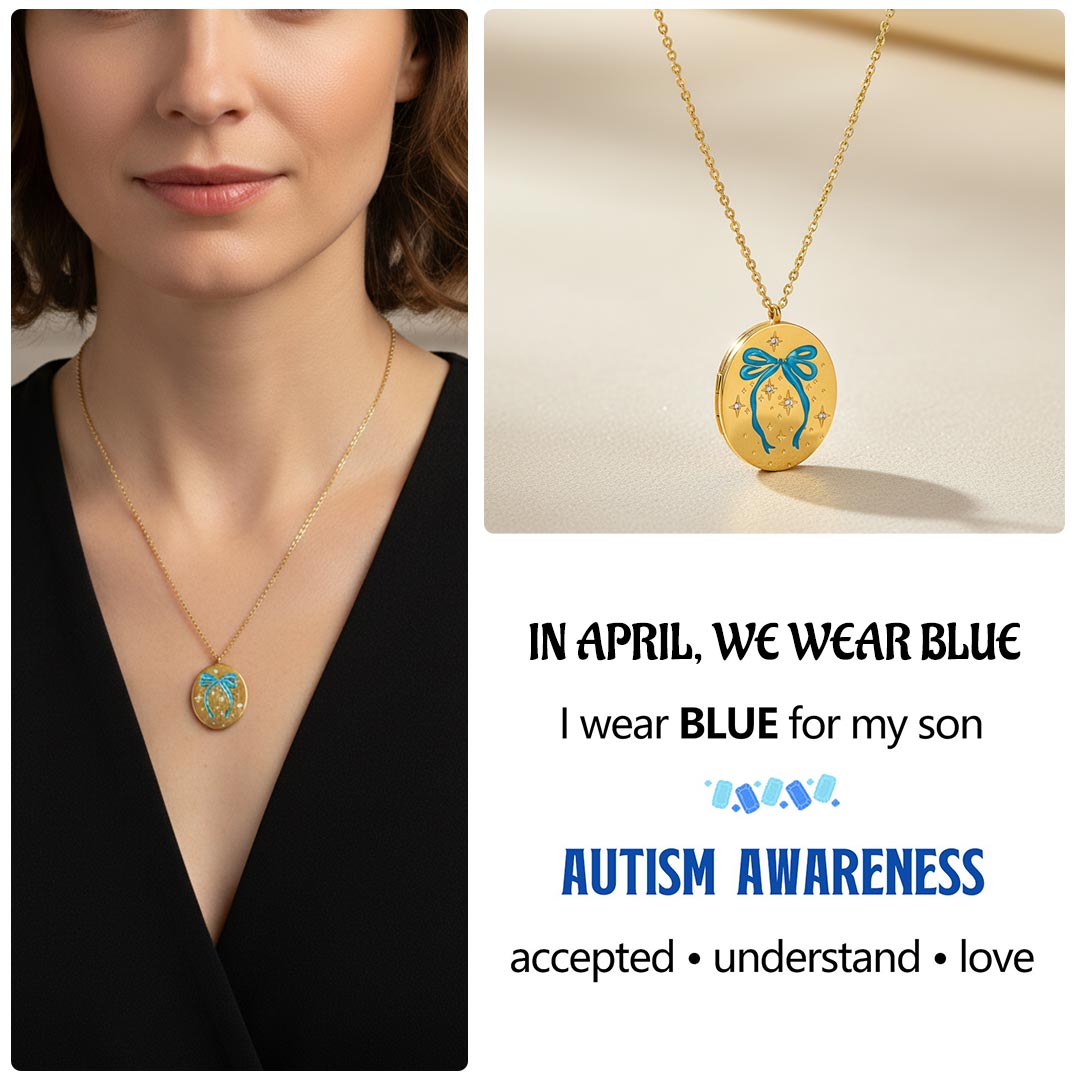 Autism Awareness-Blue Bow Round Pendant Necklace