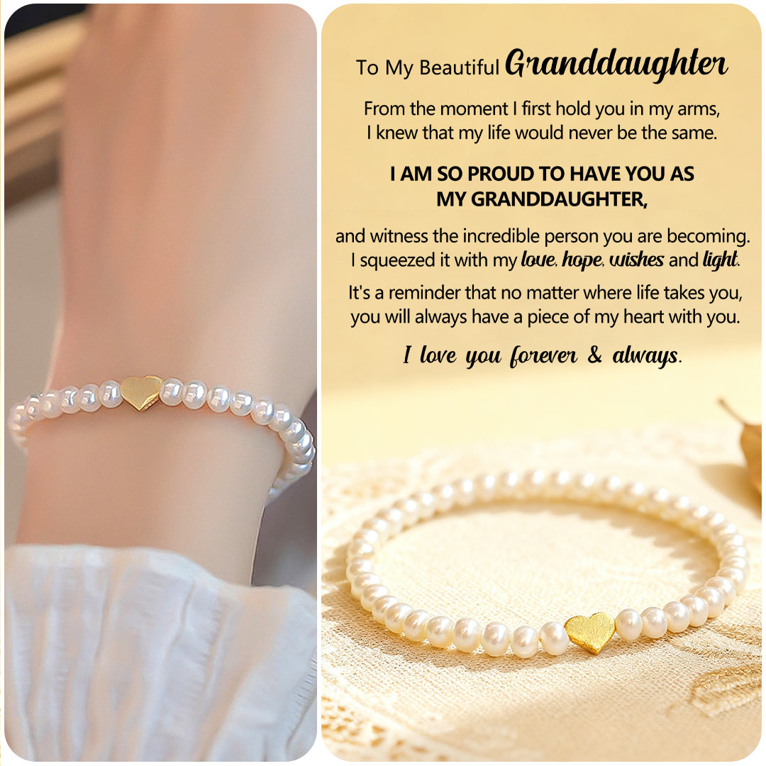 For Granddaughter - I Love You Forever & Always Pearl Heart Bracelet