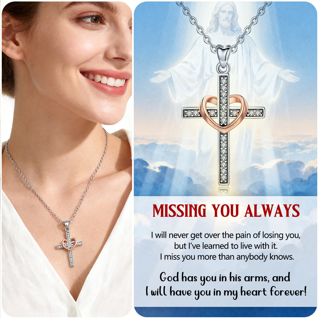 • 1*For Memorial-Missing You Always Cross Heart Necklace