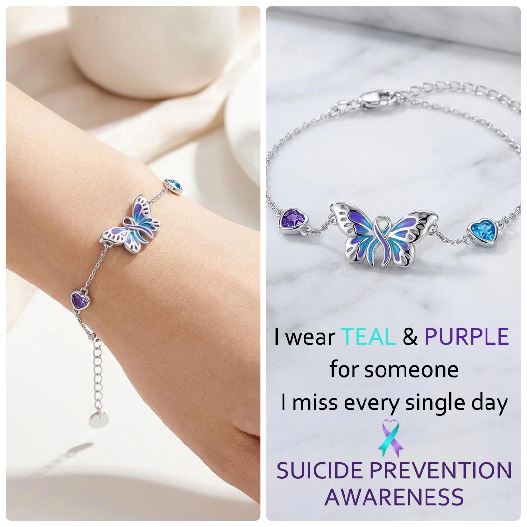 Suicide Prevention Awareness-Butterfly Purple Blue Ribbon Bracelet