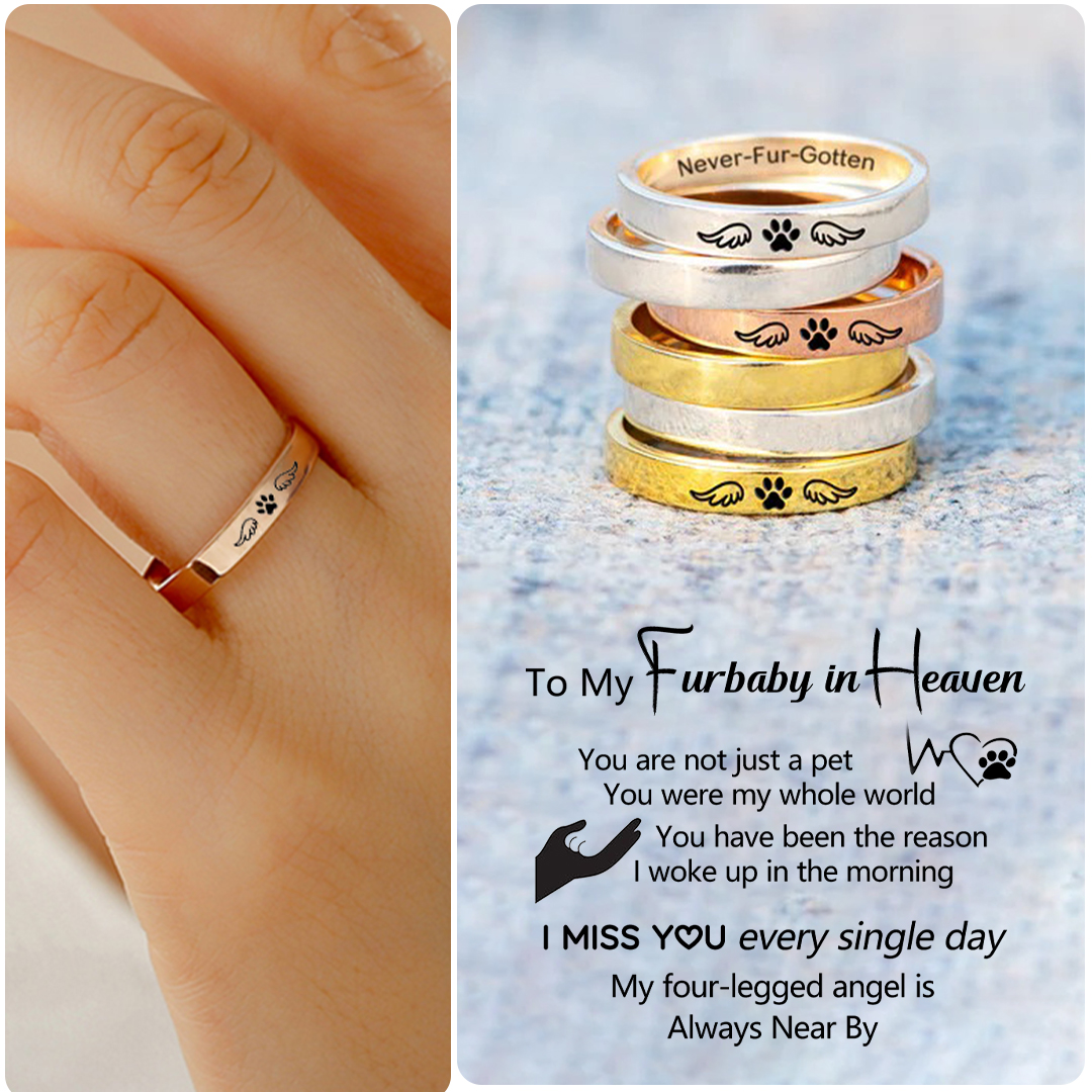 To My Furbaby in Heaven -Paw Print Wings Circle Ring